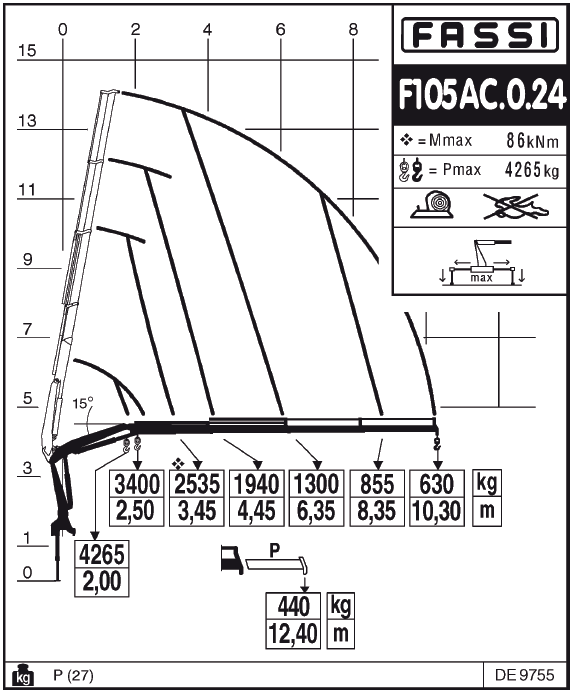 Грузовой момент крана-манипулятора F105AC.0.24 – 8,77 т.м.