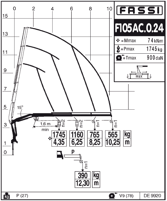 на минимальном вылете стрелы 2,00 м – 4265 кг,