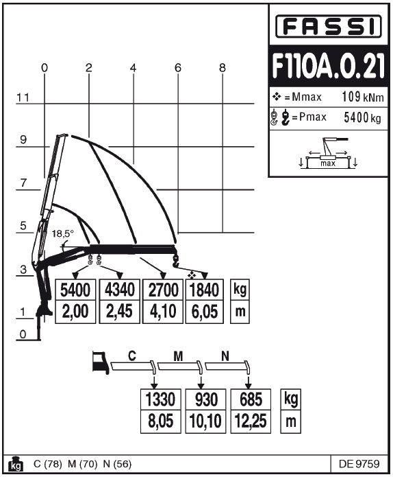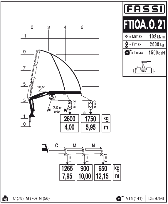 Грузовой момент крана-манипулятора F 110A 0.21 – 11,11 т.м.