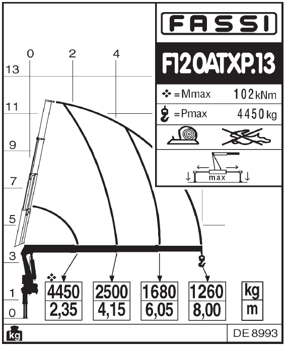 Модель манипулятора FASSI F120ATXP.13 создана специально для работы в составе машины эвакуатора – для подъема сломанных или неправильно припаркованных автомобилей массой до 2500 кг. Конструкция манипулятора обеспечивает грузоподъемность 1260 кг на максимальном вылете стрелы 8,00 м, что позволяет поднимать автомобили из второго ряда, а компактное транспортное положение в комплекте со складным пауком позволяет складывать стрелу крана за кабиной и перевозить сломанный автомобиль на дальние расстояния без опасности повреждения его крыши пауком, и без нарушения габаритов по высоте. Возможны варианты управления – снизу с двух сторон или дистанционное радио управление.