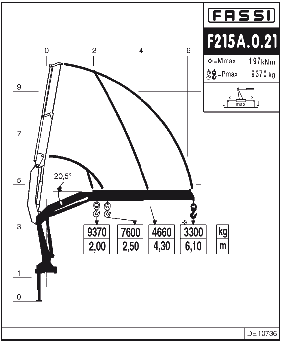 Максимальная грузоподъемность крана-манипулятора 9370кг на вылете 2,00м.