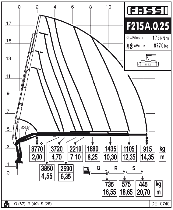 Максимальная грузоподъемность крана 8770кг на вылете 2,00м.