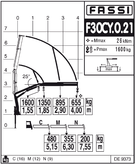 Грузовой момент крана-манипулятора F30CY.0.21 – 2,65 т.м.