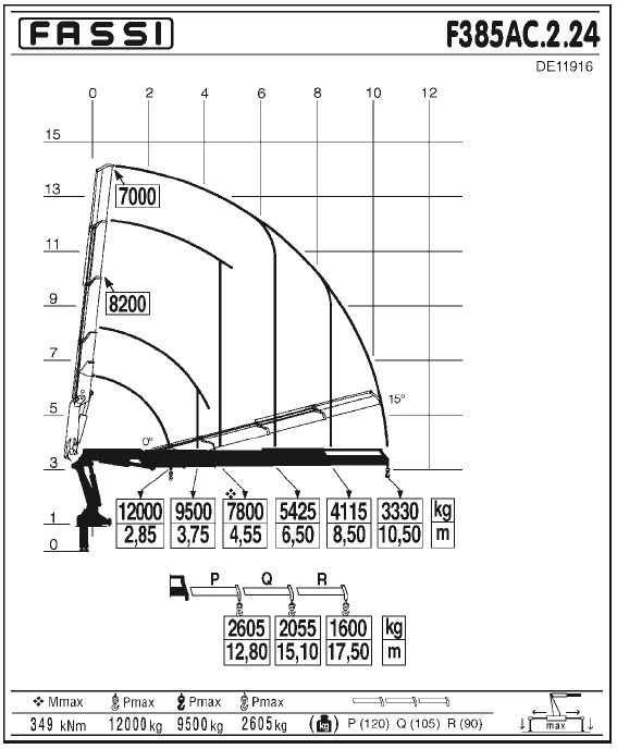Эта модель краноманипуляторной установки имеет четыре гидравлические секции телескопирования, что дает возможность на минимальном гидравлическом вылете стрелы 3,75 м. поднимать груз 9500 кг., а на вылете 10,50 м. – 3330 кг. Для увеличения вылета стрелы можно использовать, дополнительно к гидравлическим, до трех механических секций удлинения, что позволяет в свою очередь увеличить вылет до 17,50 м. с возможностью поднять на нем 1600 кг.