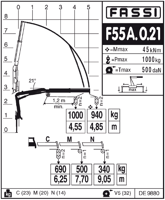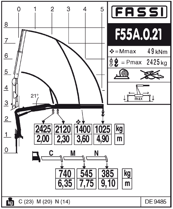 Кран манипулятор FASSI F55А 0.21 с грузовым моментом 4,99 тм относится к легкой серии крано-манипуляторных установок, рассчитан для монтажа на легкие средне тоннажные коммерческие грузовики. КМУ FASSI F55А 0.21 используются при проведении ремонтно-восстановительных работ на различных объектах. Кран манипулятор FASSI F55А 0.21 при необходимости может дополняться навесными гидравлическими инструментами, подключаемыми через быстроразъемное соединение, и существенно облегчающими многие виды работ.