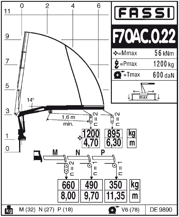 Грузовой момент крана-манипулятора F70AC.0.22 – 6,63 т.м.