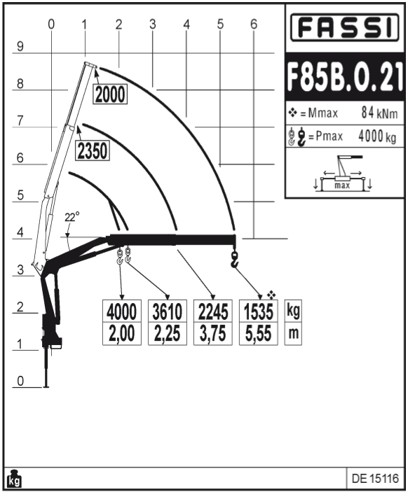 | F85BC.0.22 | 8,56 | 5,95 | 2,80 | 400 | 11,7 | 31,0 | 30-40 | 90 | 955 | 2270 | 690 | 1975 |