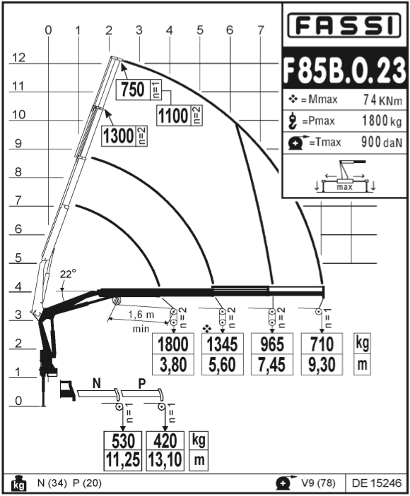 Грузовой момент крана-манипулятора F85B.0.23 – 7,95 т.м.