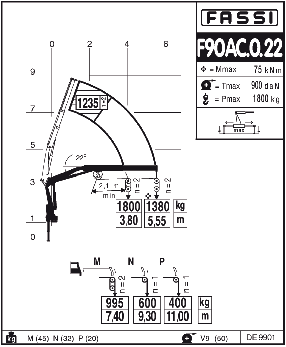 Грузовой момент крана-манипулятора F90AC.0.22 – 8,56 т.м.