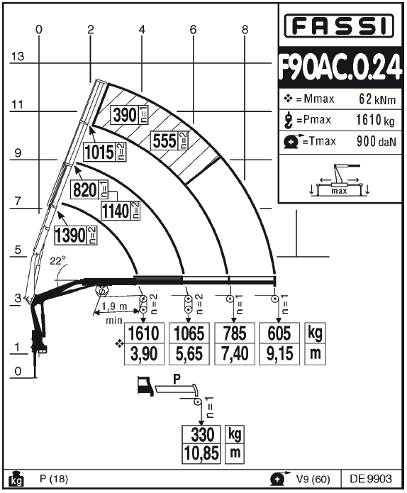 Грузовой момент крана-манипулятора F90AC.0.24 – 7,34 т.м.