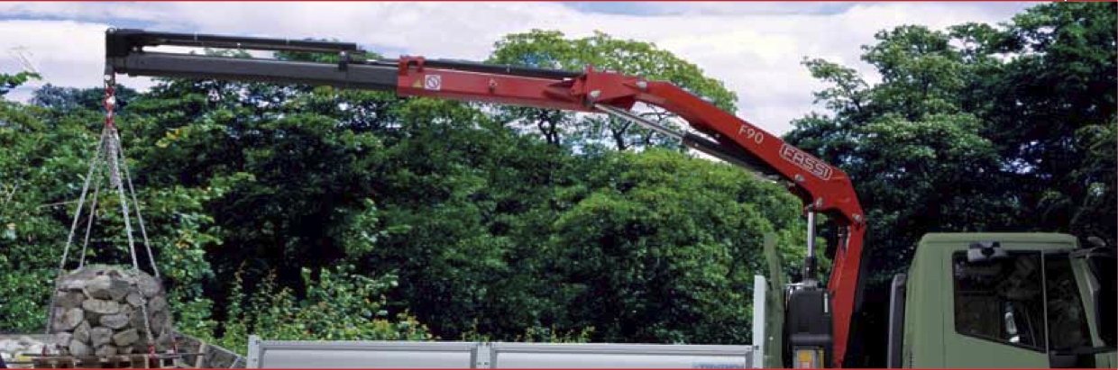 Кран-манипулятор F90AC.0.24 оснащен короткой внешней стрелой, что позволяет поднимать объемные грузы прямо под колонной крана.