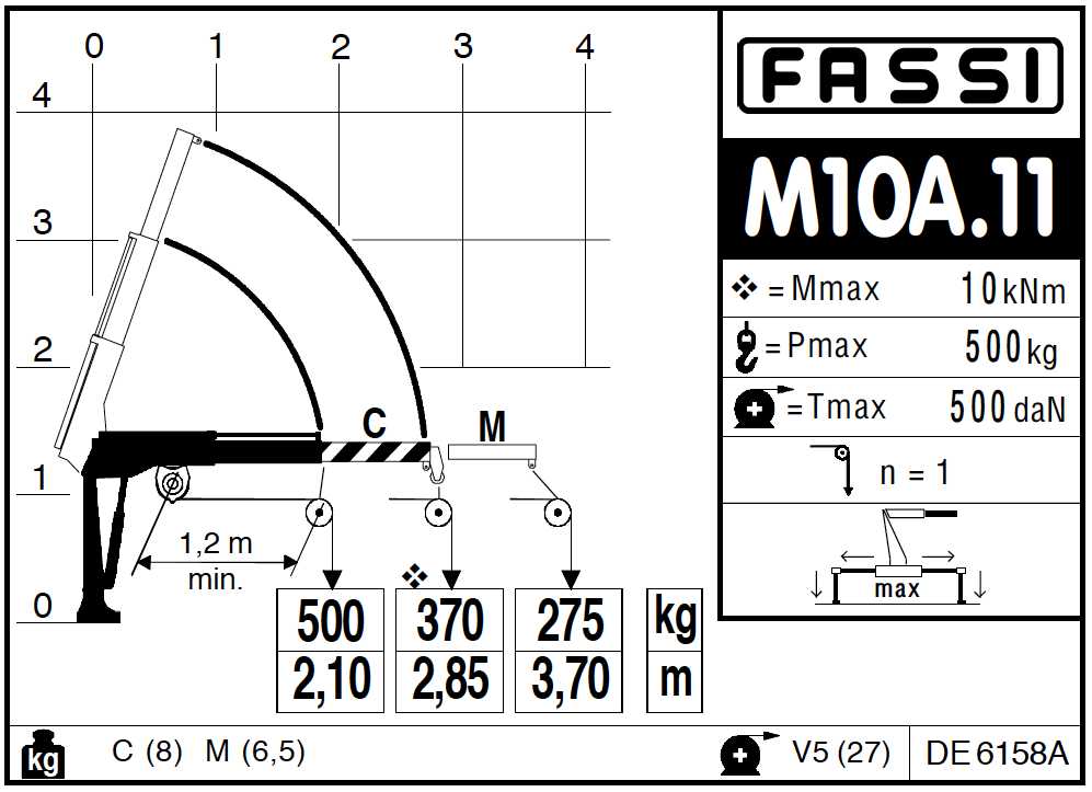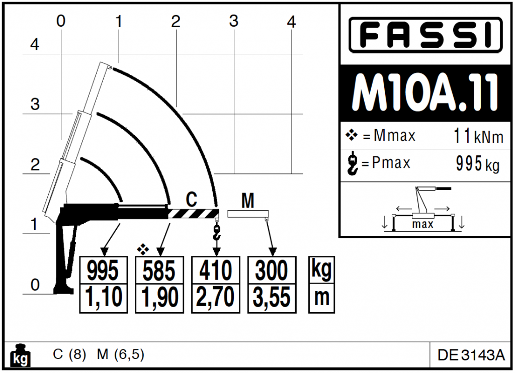 КМУ FASSI М10А.11 разработан для легких коммерческих автомобилей и легковых автомобилей – пикап. Данный кран манипулятор устанавливается прямо на бортовую платформу, а для устойчивости во время работ, предусмотрена одна гидравлическая опора.